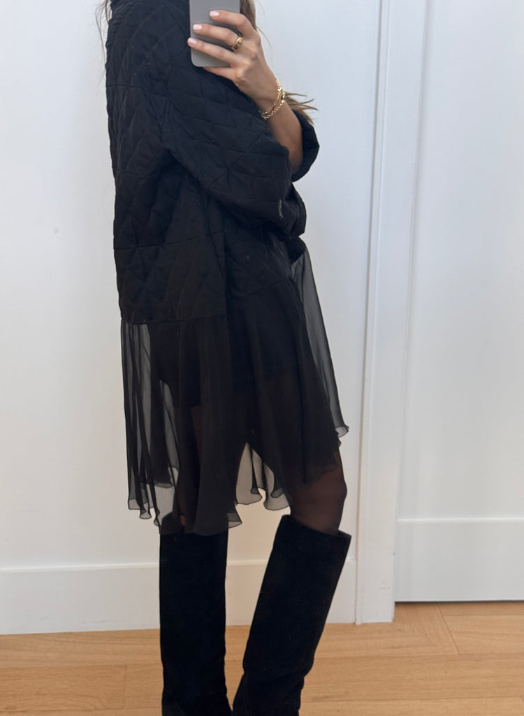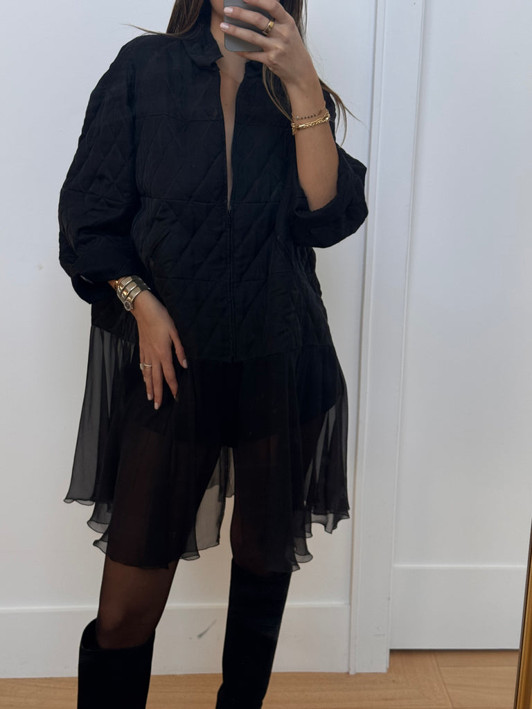 Chanel Spring 2013 Runway Quilted & Chiffon Black Jacket