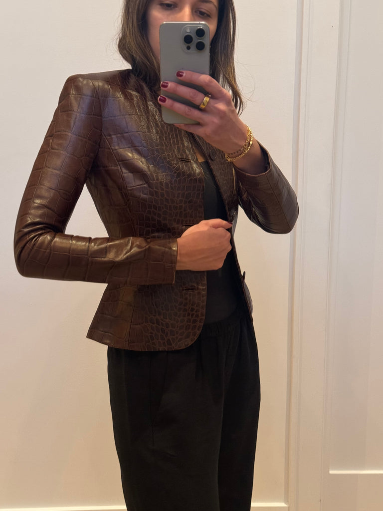 Vintage Ralph Lauren Croc Embossed Leather Jacket