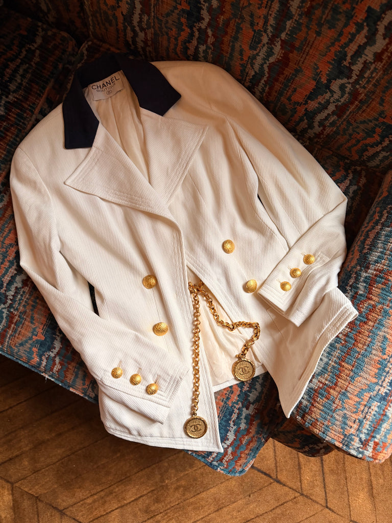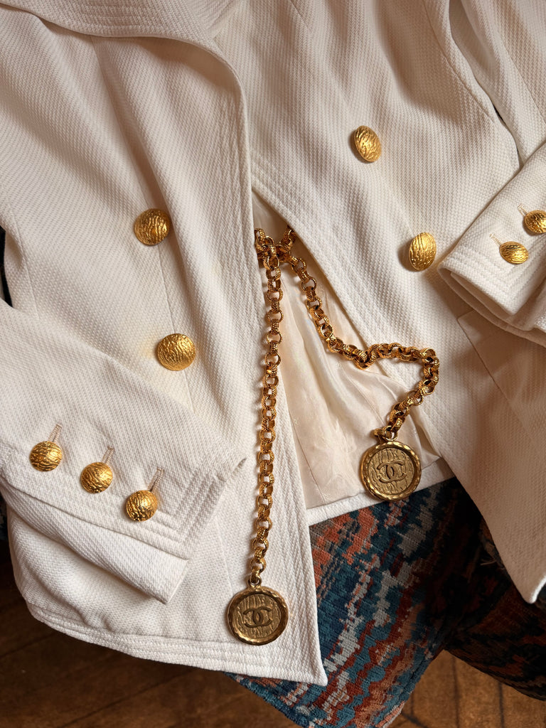 Vintage Chanel White Chain Closure Blazer