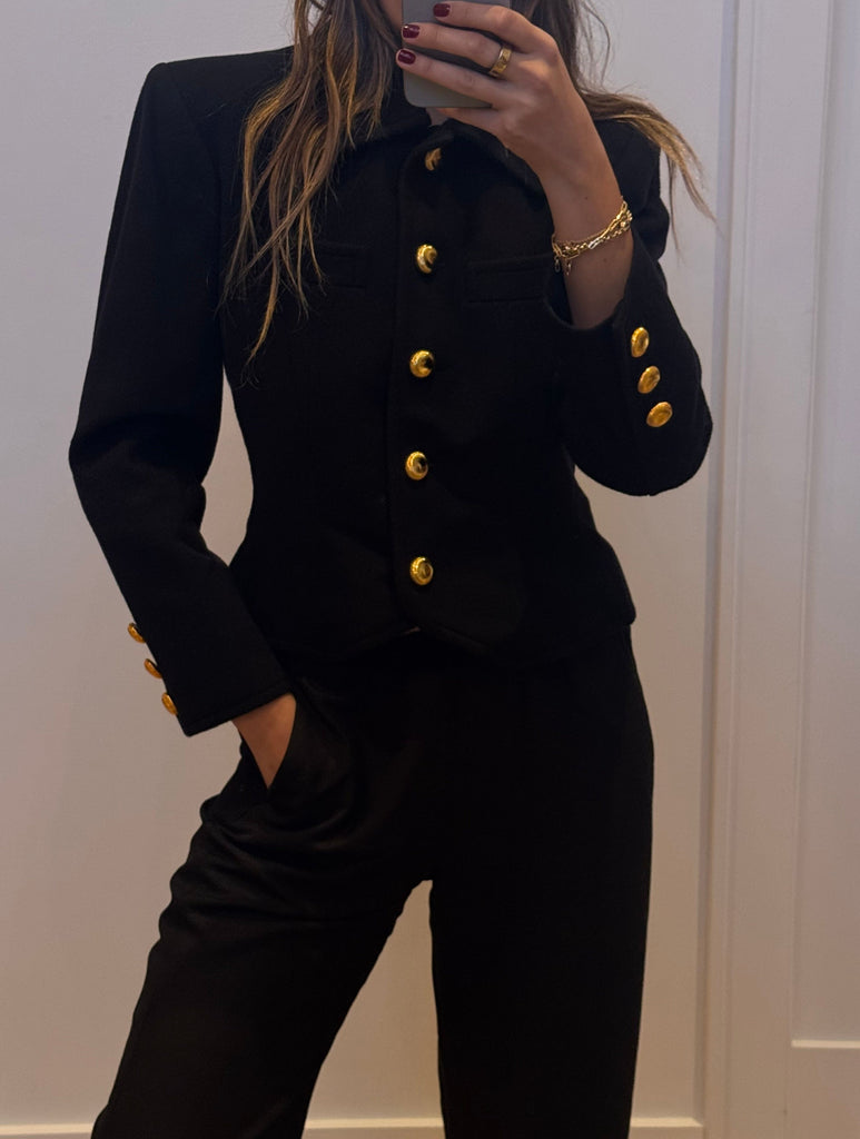 Vintage Yves Saint Laurent black wool cropped jacket.